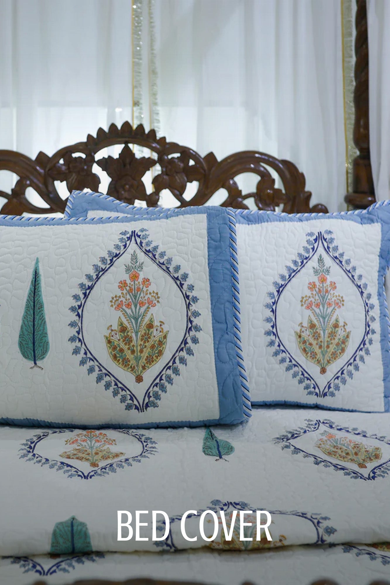 Mughal Garden Green Bed Cover